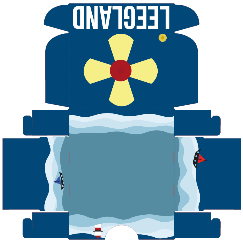 Verpakking doos: Op de doos komen weer de boten en vuurtoren van de kaft naar voren. Op de bovenkant van de doos staat een vuurtoren vanaf bovenaf gezien. Die licht schrijnt over het water. Het kan ook worden aangezien als de wieken van de motor van een boot.