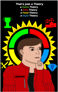 Een project voor Wageningen 45 2024. De opdracht was dat je een poster maakt van iemand die voor jou een verschilmaker is. De persoon die ik hiervoor gekozen had is MatPat. de oude gastheer van de YouTube kanalen: Game theory, Film theory, Food theory en GTlive. Voor de poster zelf heb ik een illustratie gemaakt van MatPat in zijn iconische pose en in zijn bekende rode jasje. Voor de achtergrond heb ik de logo’s van zijn kanalen na gemaakt en de tekst is de Quote van de theory kanalen. maar dat is allemaal gewoon een theorie.